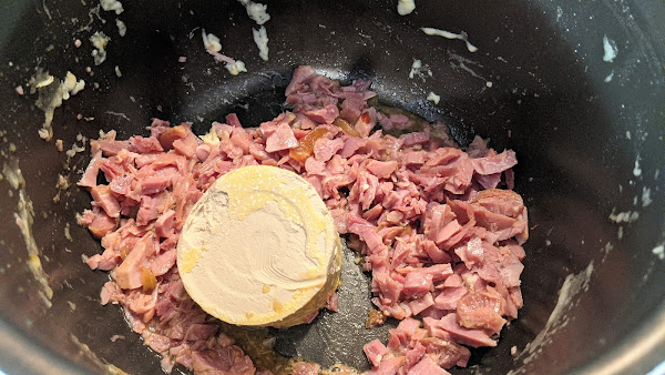 4 cucharadas de la bechamel reservadaSeleccionamos menú freír y ponemos la carne y el resto de ingredientes en la cubeta. Mezclamos muy bien