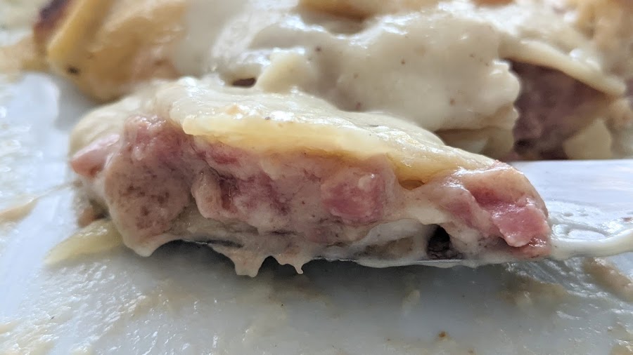 Elige codillos, a ser posible, con piel y hueso. Yo los aso en olla lenta, 10 horas en baja (lo pongo antes de acostarme) y mantenimiento de calor hasta la hora de comer, con una cama de patatas y pimiento rojo y cebolla encima de los codillos. Cuándo se enfría lo suficiente desmenuzamos la pieza y guardamos la carne en un táper (con un poco de salsa) y también congelamos un tarro con el jugo. Así disfrutamos de un buen plato de carne y queda preparada la parte más importante de la lasaña