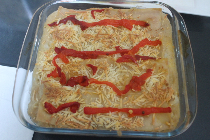 Volvemos a cubrir de bechamel y añadimos las dos láminas de pasta restantes.