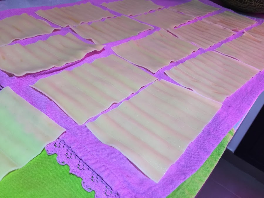 3. Escurrimos el agua y colocamos las placas de lasaña sobre un paño de algodón para que pierdan el exceso de agua que puedan tener. Repetimos este paso con la segunda caja de placas de lasaña.