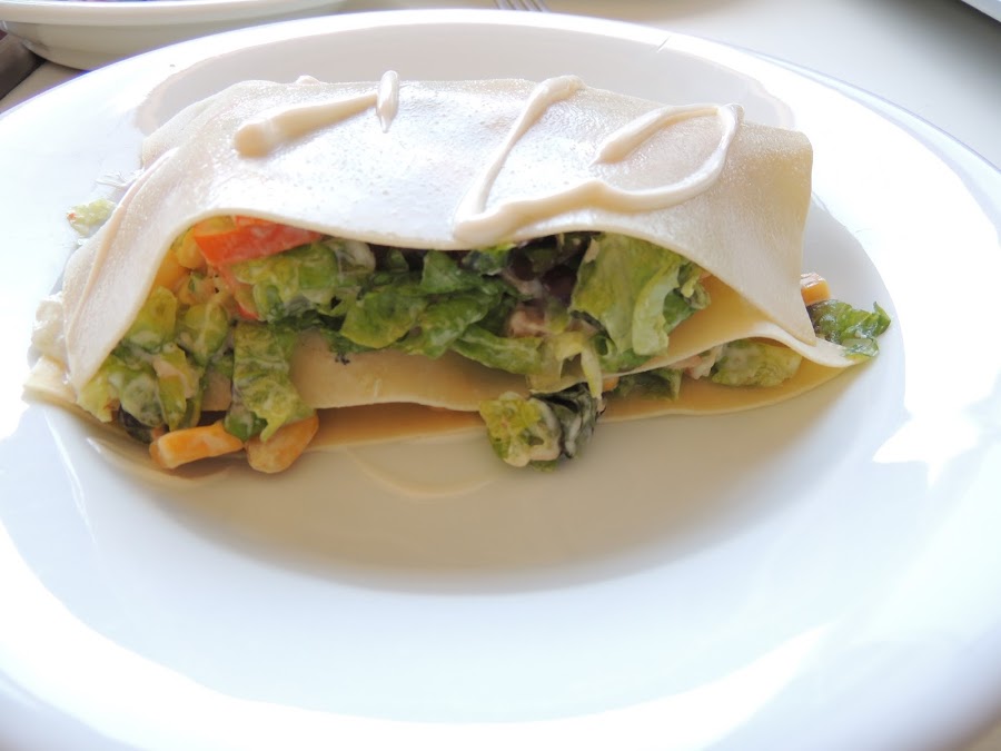 Montamos la lasaña alternando láminas de pasta con el relleno y decoramos con un poco de mayonesa por encima.