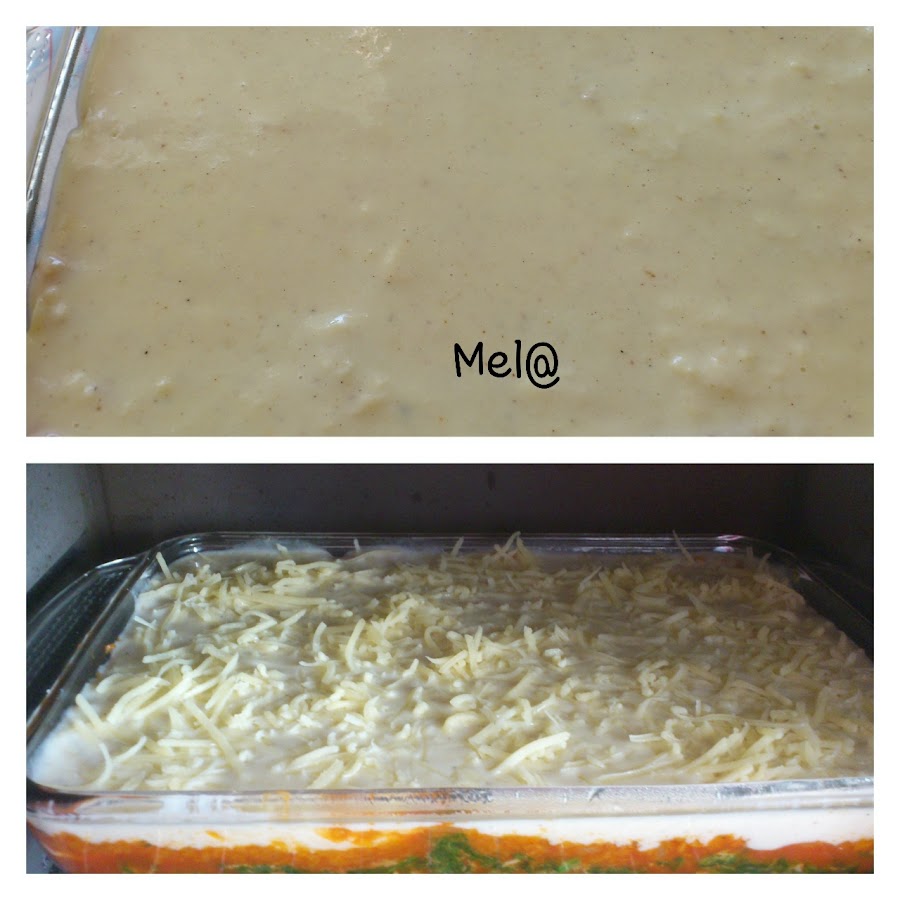 Encima de todo, una bechamel clarita y queso rallado.