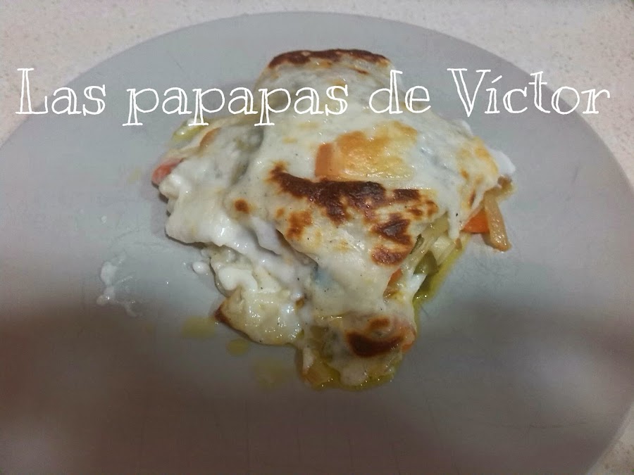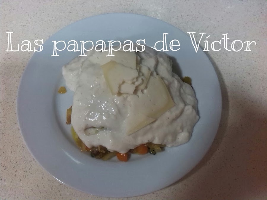 Ahora toca bañarlo con la salsa bechamel, que es muy fácil de hacer; otro día sin falta lo hago.