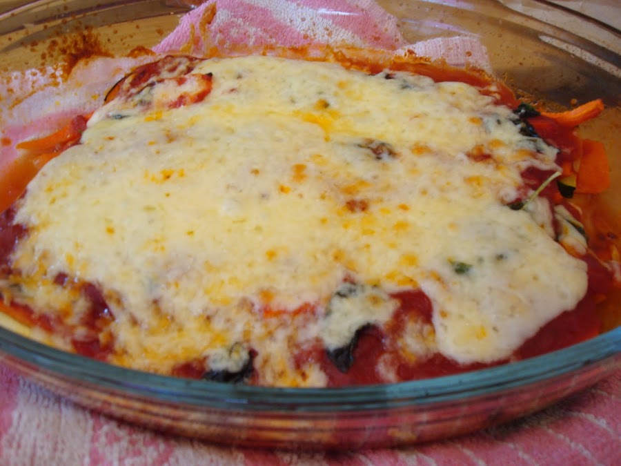 Con el horno precalentado a 180º metemos la bandeja y vamos comprobando las verduras hasta que veamos que están echas y el queso gratinado. Y este es el resultado final: