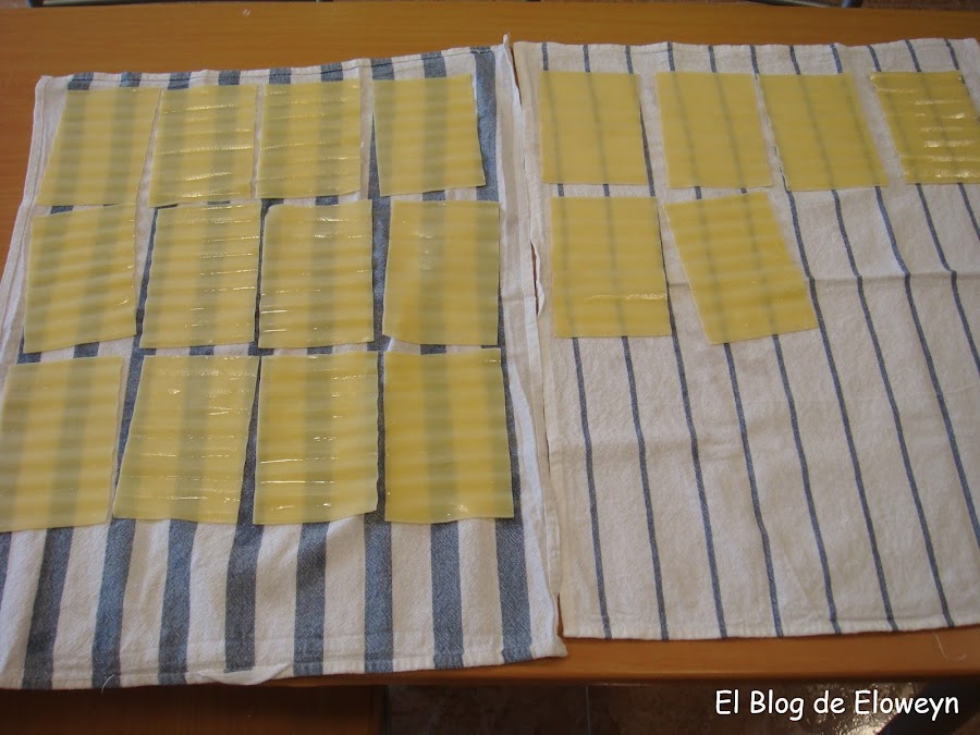 Una vez estén las placas de lasaña preparadas, ponedlas sobre un paño limpio para que escurran toda el agua.