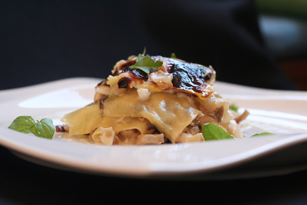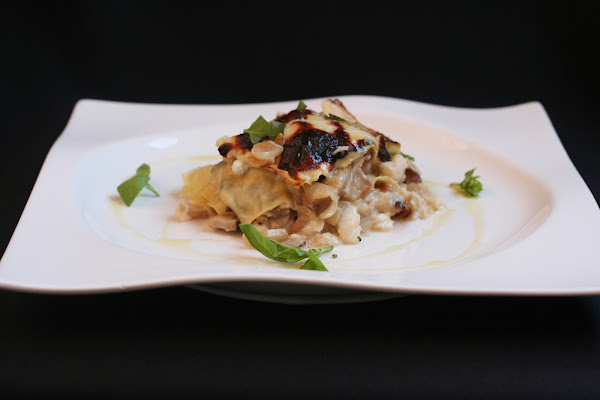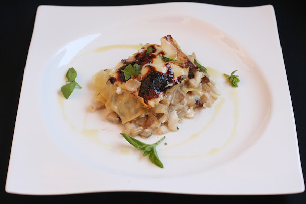 Horneamos a 200º durante 15 minutos. Si es necesario, ponemos la lasaña 5 minutos al grill para que coja un tono más dorado. Servimos con trocitos de albahaca fresca y un chorrito de aceite de oliva.