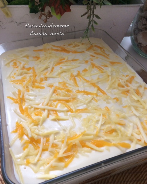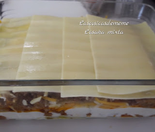 Comenzamos poniendo una capa de placas, encima una de la carne que tenemos preparada, un poco de bechamel, espolvoreamos con queso rallado, volvemos a poner otra capa de placas, carne, bechamel y queso, terminamos con una capa de placas...cubrimos todo con la bechamel, espolvoreamos con queso, ya la tenemos preparada para gratinar...