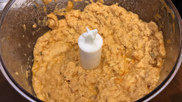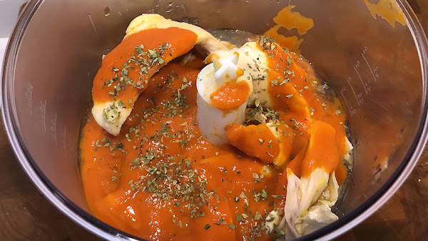 Tritura en una máquina procesadora el pollo con la salsa de tomate frito con sal, pimienta negra molida y orégano a tu gusto.