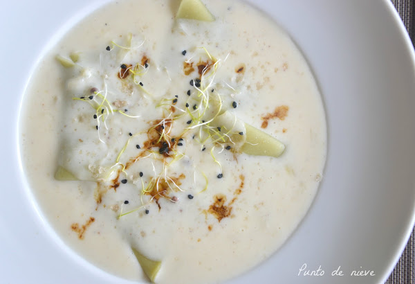 Añadimos esta mezcla a la leche templada, subimos el fuego y, sin dejar de remover, cocemos hasta que hierva y espese (a vuestro gusto). Echamos la nuez moscada, sal y pimienta.
