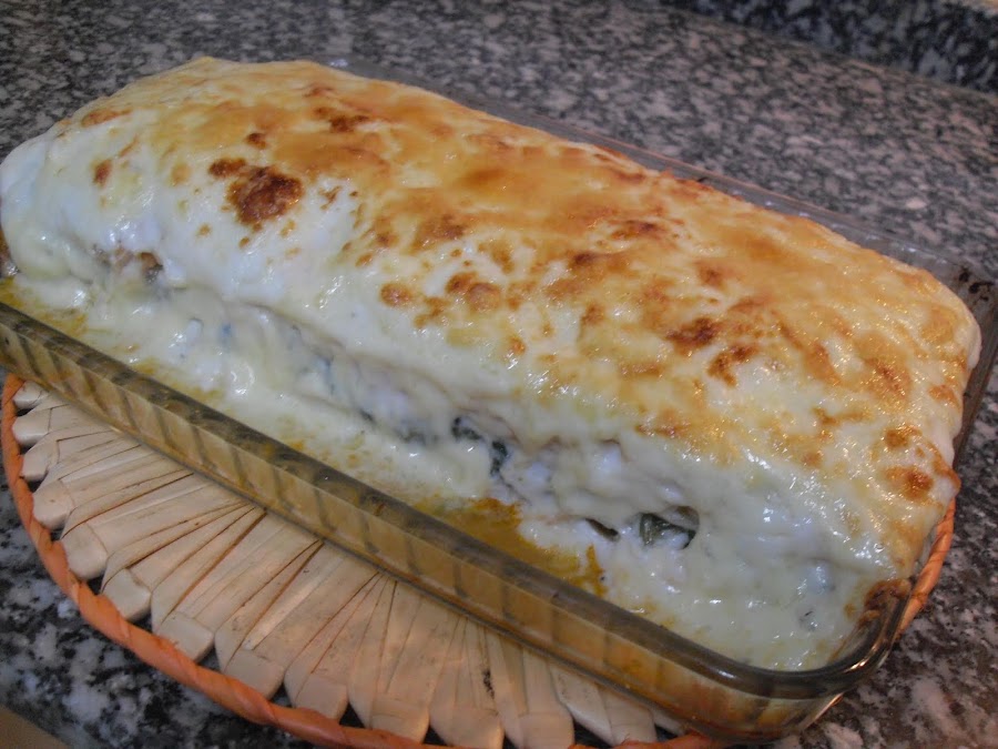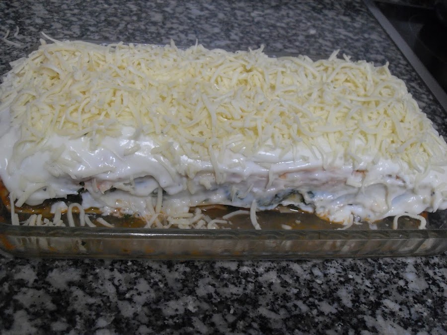 Se puede poner bechamel, ligeramente mezclada con las espinacas.
