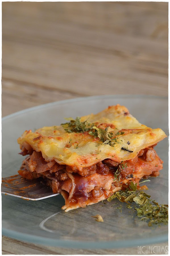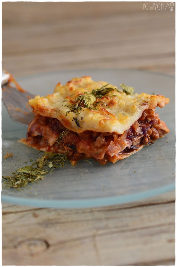 Da el pego totalmente con la carne picada, y no se distingue para nada su sabor. Una lasaña totalmente igual a la que hemos comido toda la vida en casa