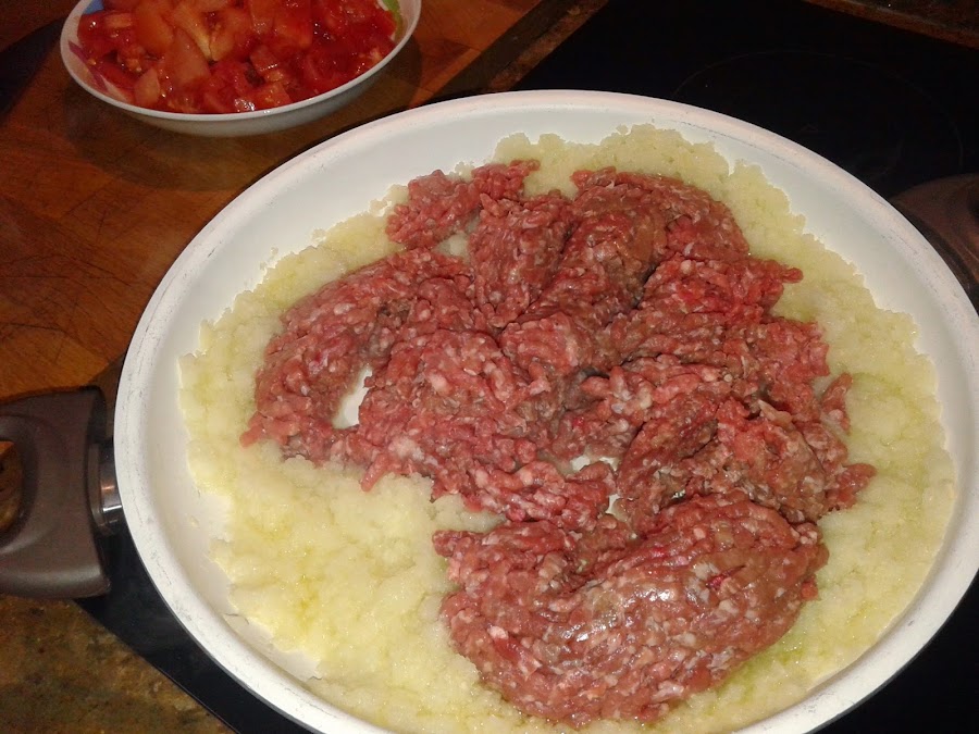 Pasados los 5 minutos, echaremos la carne picada y pondremos el fuego a máxima potencia.