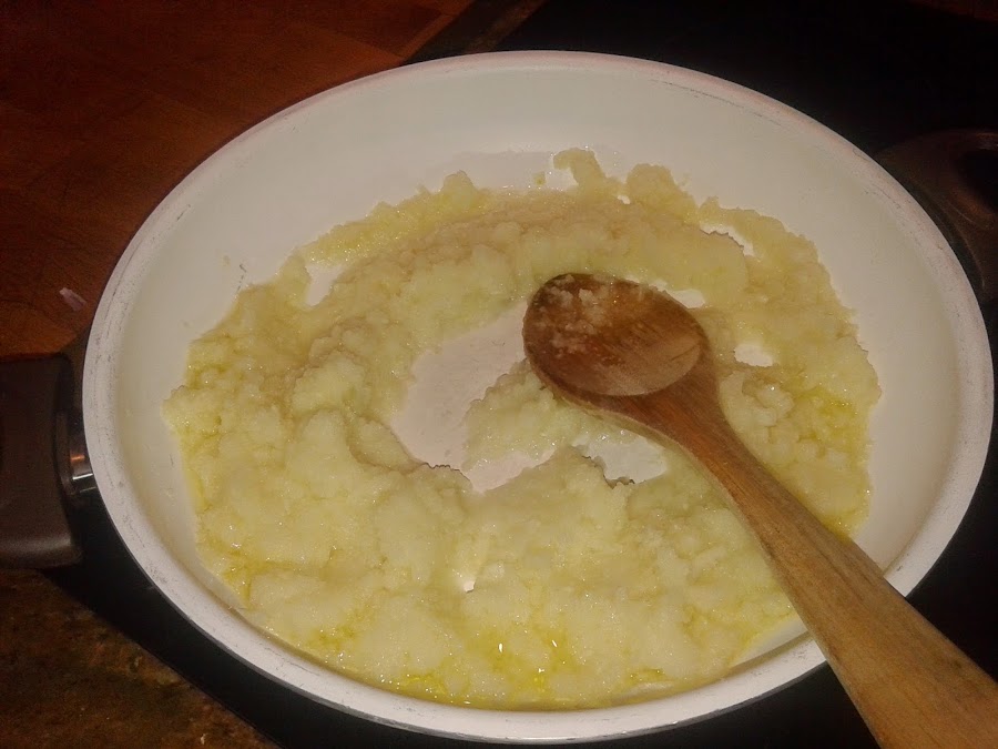 Trituramos la cebolla y los ajos y los echamos a la sartén.