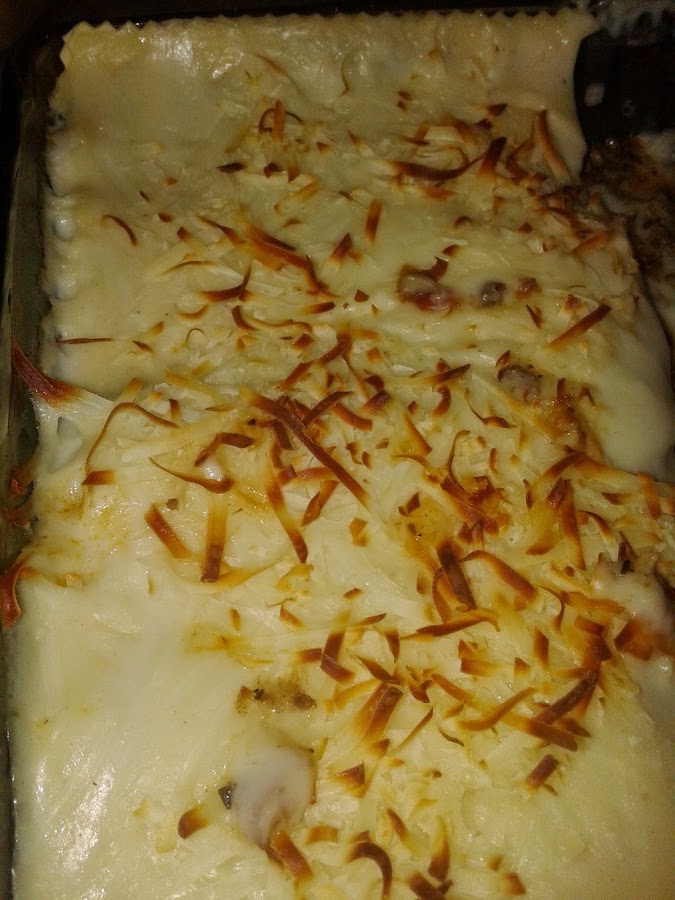 La ultima capa de lasaña la cubriremos con bechamel y queso rallado.
