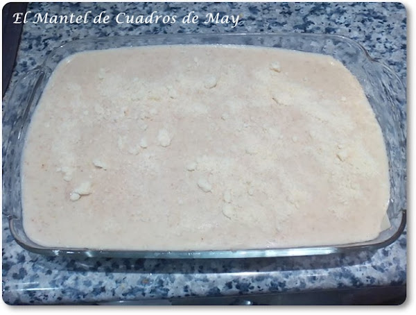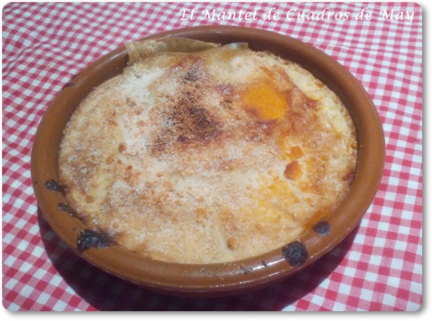 Cuando pongo la cuarta capa de láminas de lasaña lo cubro todo con bechamel, luego espolvoreo queso rallado y pongo unos pegotitos de mantequilla para cuando se gratine quede una costra dorada.