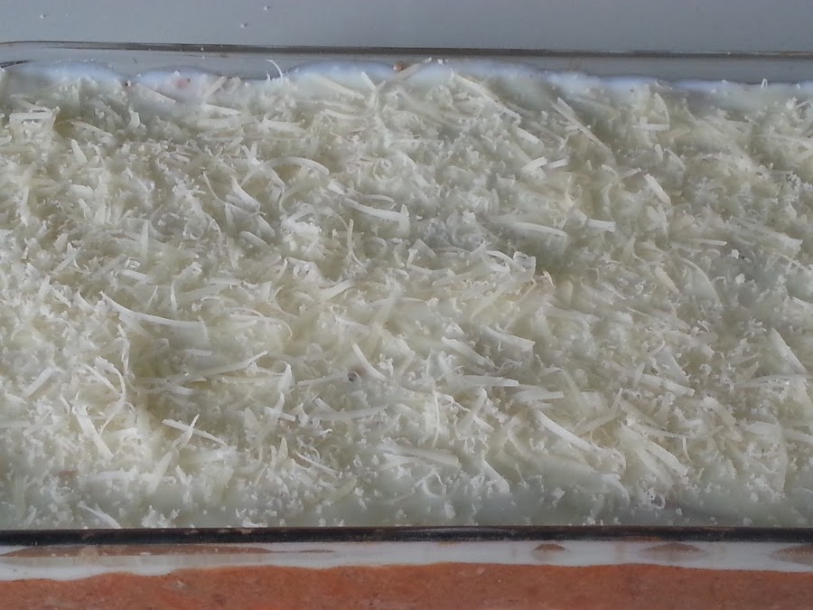 9. - Cubrimos con la bechamel y espolvoreamos con queso.