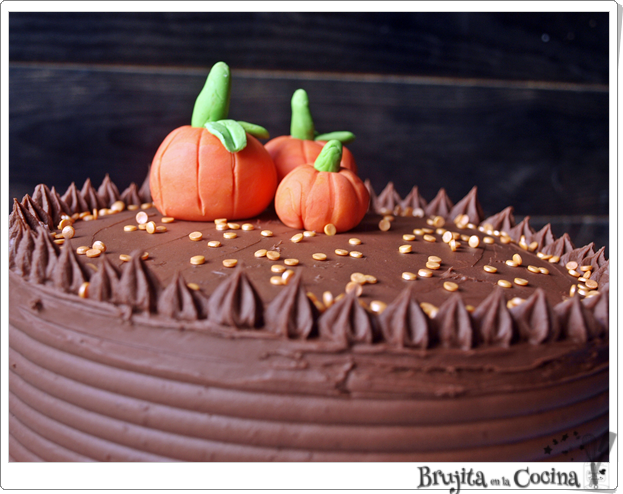 Cortamos los bizcochos en dos, lo que tendremos 4 partes. Ponemos una sobre la base y cubrimos con la mitad de la crema de queso, tapamos con otro bizcocho y le ponemos 1/3 del glaseado de chocolate, el resto va a ser para cubrir la tarta y decorar. Tapamos con otro bizcocho y terminamos la crema de queso, tapamos con lo que queda y cubrimos con el glaseado por arriba y los laterales. El resto de la crema metemos en manga pastelera con boquilla rizada para hacer las decoraciones.