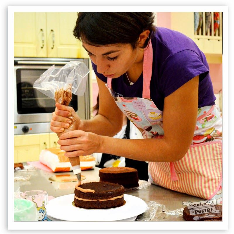 La receta principal que estuvimos practicando fue este exquisito LAYER CAKE DE CHOCOLATE con BUTTERCREAM DE NUTELLA. Os cuento la receta a continuación con el permiso de Alma y os enseño todas las fotos que hicimos.