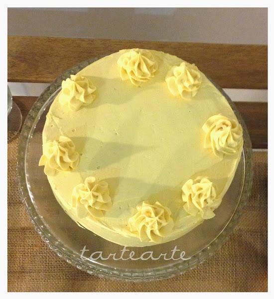 Cuando haya pasado ese tiempo, cubrimos la tarta con la buttercream y la alisamos con una espátula.