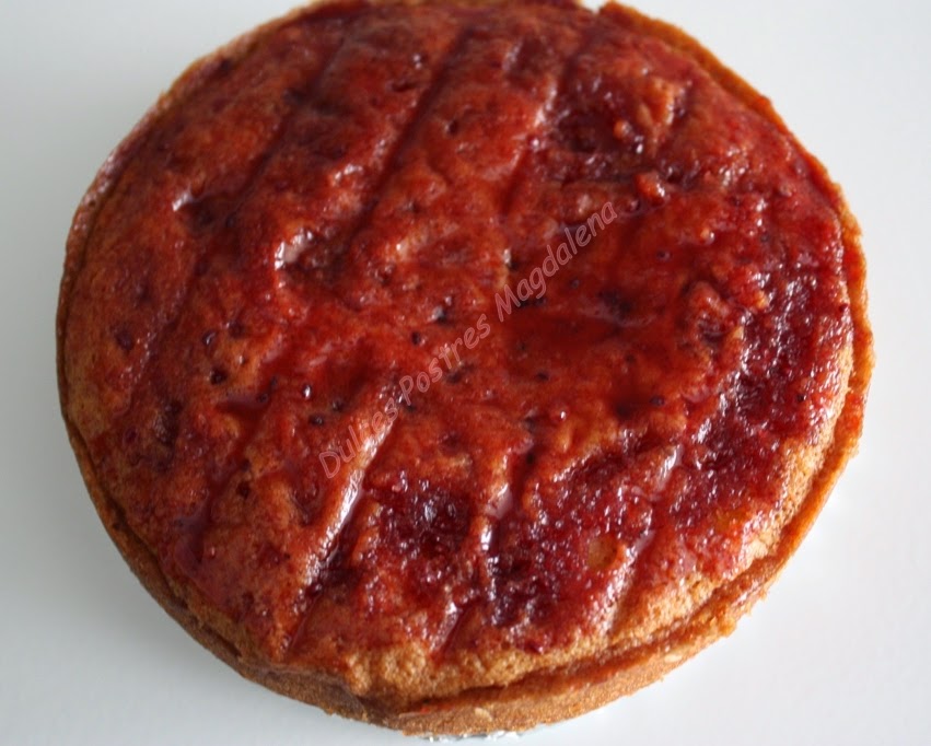 Pinchar con un palillo (haciendo agujeros) y pincelamos con el almíbar.