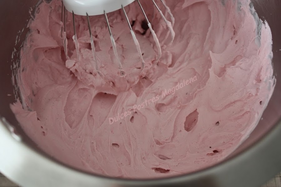 En un recipiente, mezclar el azúcar glasé con el queso de untar y la pasta de frambuesa.