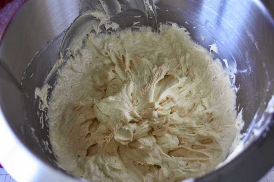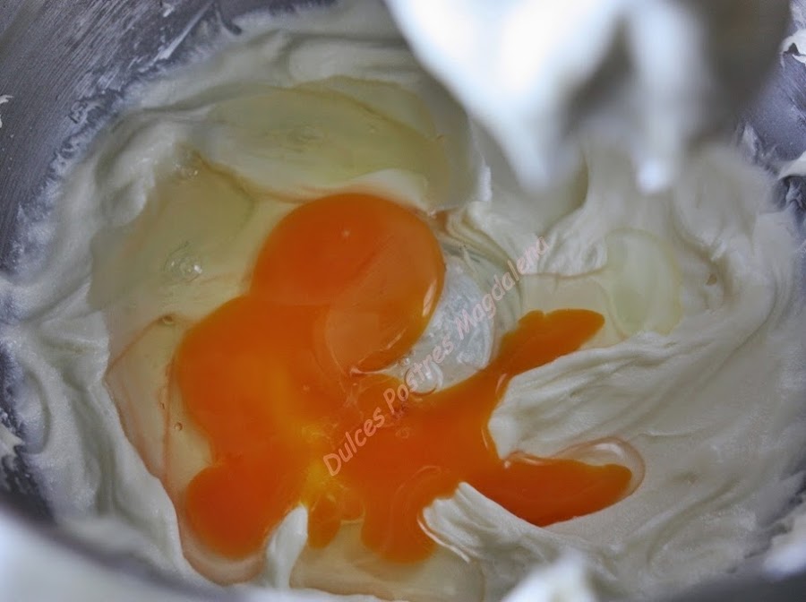 Añadir los huevos de uno en uno, sin dejar de batir.