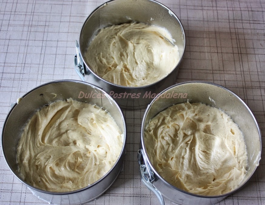 Ingredientes para los bizcochos: (para 3 moldes de 13 cm)