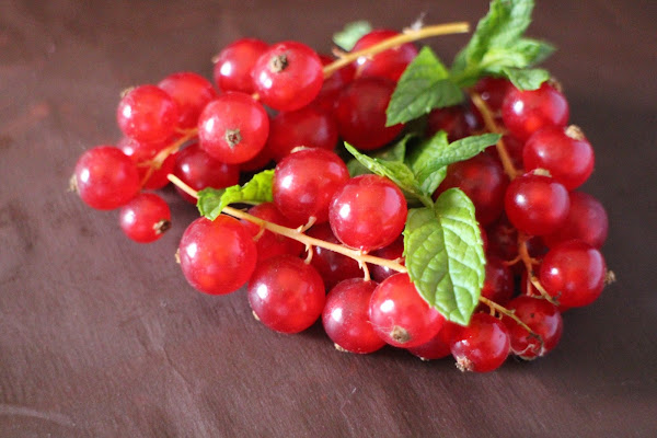 Por último colocamos la lámina de chocolate y adornamos con unas grosellas y unas hojas de hierbabuena fresca.