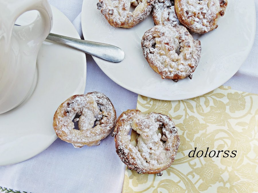 Picar las avellanas tirando a pequeñas (no triturarlas) , repartirlas por encima de los lazos y pintar estos con huevo batido.