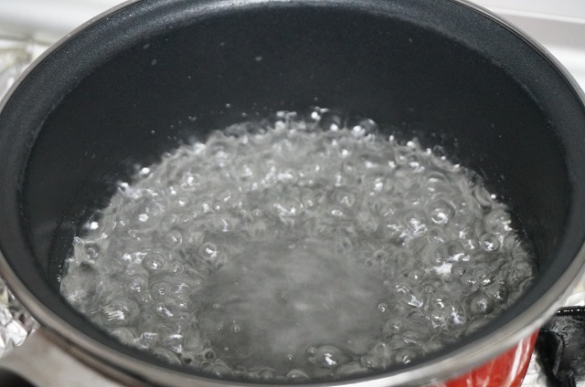 Lo primero pondremos el agua y el azúcar en un cazo a calentar y prepararemos un almíbar, lo dejaremos unos 10 minutos cociendo a fuego medio. Reservamos.