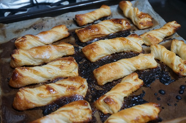 Lazos de hojaldre con leche condensada