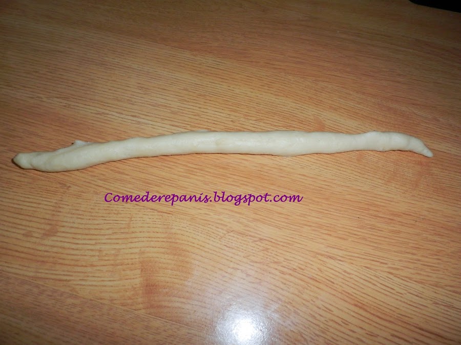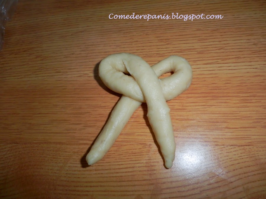 Con un trozo de masa formamos un churro y luego lo entrelazaremos en forma de lazo, es muy similar a querer hacer la letra &.