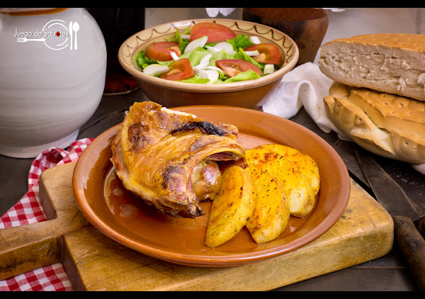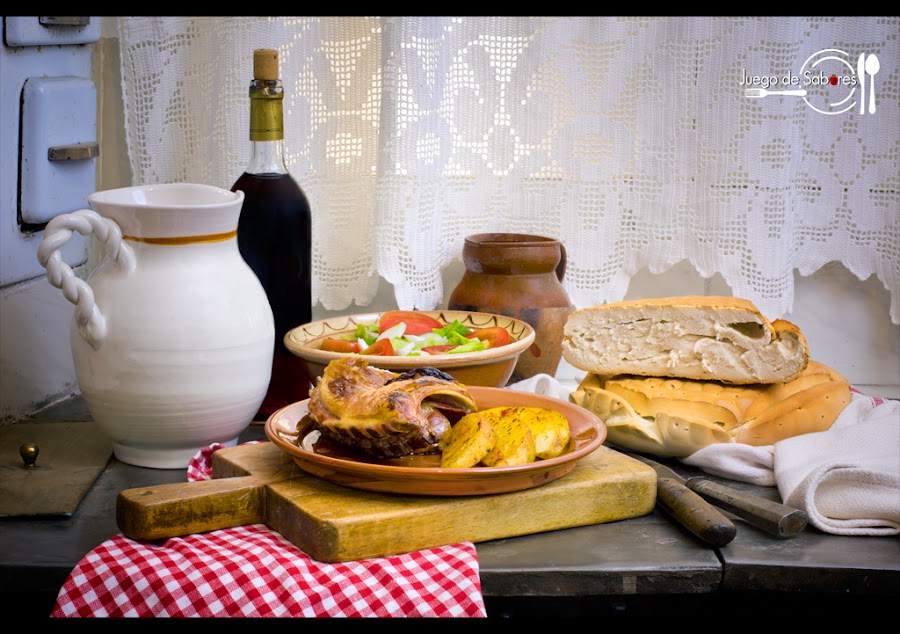 Desde hace ya bastante tiempo, y de forma periódica, alguien nos recuerda que falta en nuestro blog el que es, tal vez, el ejemplo más representativo de la gastronomía tierracampina: el lechazo asado. Lo sabíamos y, por ello, no hemos dudado ni un minuto en responder al reto planteado por una empresa de nuestra tierra de elaborar un plato en el que el ingrediente principal debía ser lechazo churro (sí, el de más calidad, que se reconoce por su rabito largo y delgadito, y su distintivo IGP). Hemos pensado en preparar esta carne en el horno de leña que nuestro hermano César controla a la perfección (aunque en el horno eléctrico de casa también queda exquisita). Está asada a la manera tradicional, creyendo que la calidad del producto no debía de quedar enmascarada por ningún otro sabor, y acompañada de unas patatas asadas con pimentón y hierbas aromáticas. Tampoco podía faltar en la mesa una sencilla ensalada de verduras de la huerta.