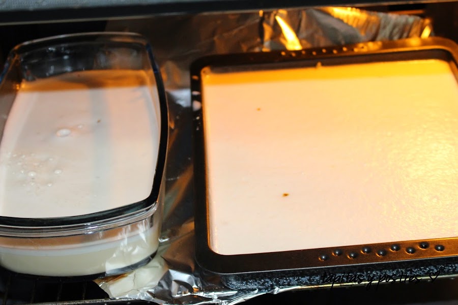 Vertemos en un molde con caramelo líquido y horneamos 40 minutos a 180º, calor arriba y abajo.