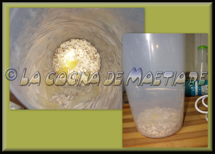 Colocar en el recipiente los copos de avena,la pizca de sal, la corteza de limón,el azúcar,el azúcar avainillado