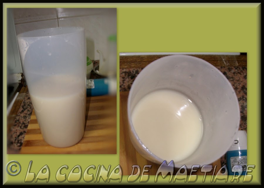 Esta receta proviene del blog de chufamix. Yo he cambiado la canela por azúcar avainillado y ya que no poseo ésta pequeña maravilla de aparatito la he hecho con un batidora en un recipiente que me agencie en un chino de 1,8 litros de capacidad para poder batir el conjunto sin problemas de que desbordara . Lo ideal es hacerlo con la chufamix porque las leches vegetales se emulsionan mejor.