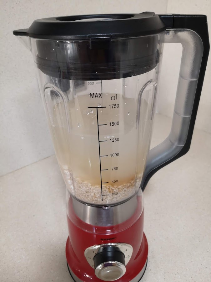 Al día siguiente desechamos esa agua, la colamos y la ponemos en el vaso batidor que tengáis