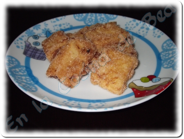 Sacamos a papel absorvente para que pierdan el exceso de aceite y rebozamos en una mezcla de azúcar y canela.