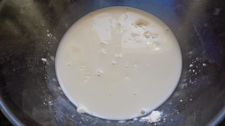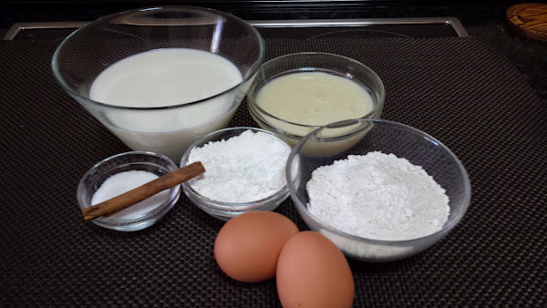 En un bol, mezclamos la harina de maíz con el vaso de leche reservado. Mezclamos bien que no queden grumos y añadimos la mezcla a la leche hervida antes y que tenemos reservada.