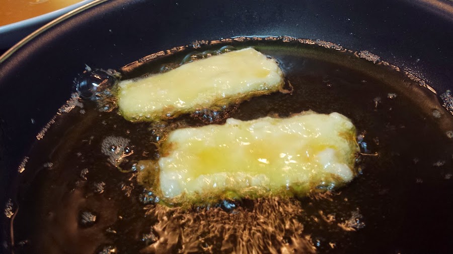 Freímos en aceite de oliva caliente hasta que se doren. Vamos retirando y colocando sobre papel absorbente.