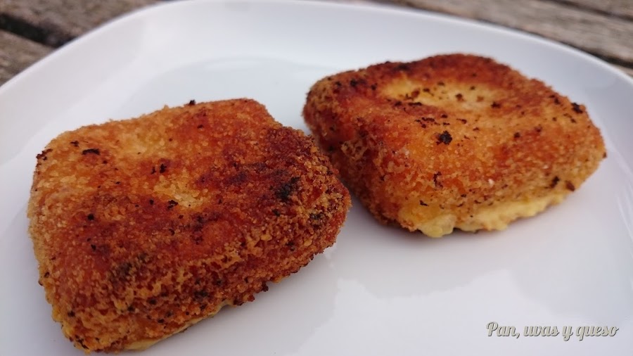 Una ves fría, cortamos las porciones y las empanamos pasándolas primero por un huevo batido y después por pan rallado.