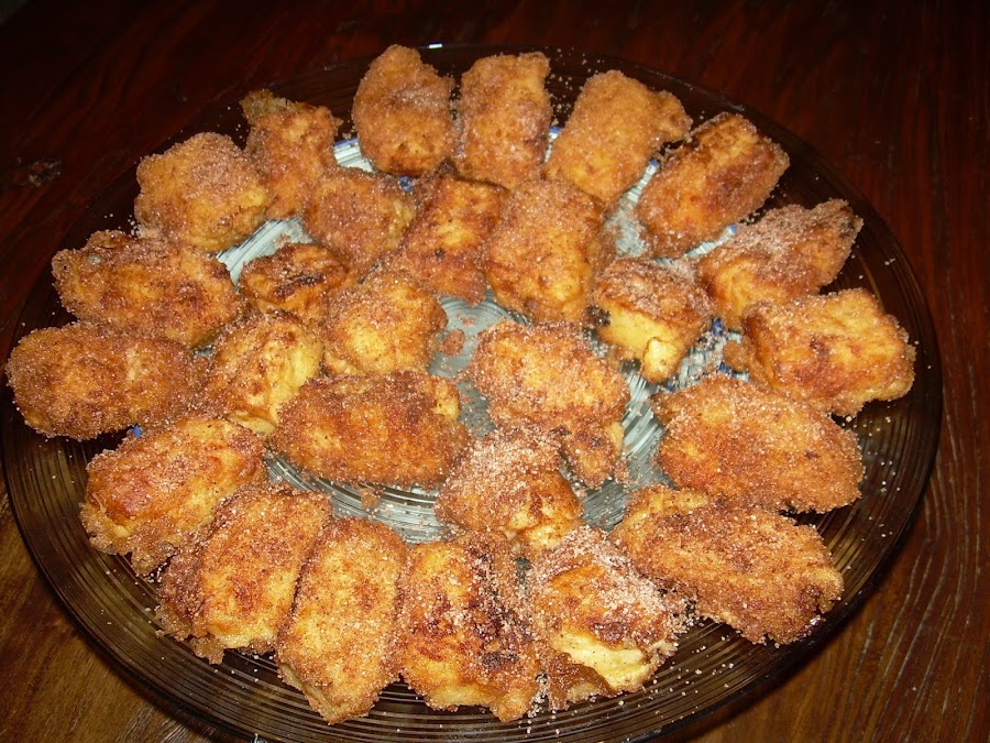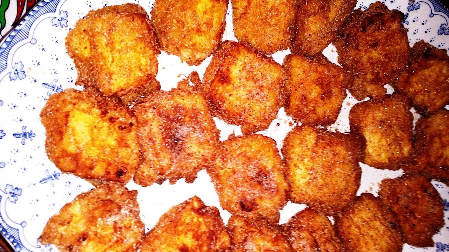 En un plato, mezclamos el azúcar glass y la canela en polvo y vamos pasando todas las porciones.