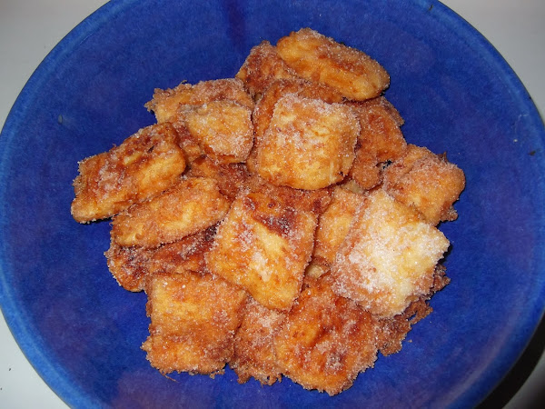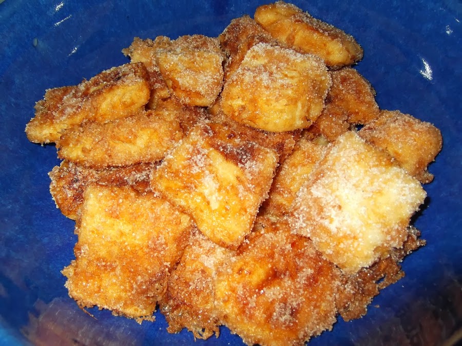 Finalmente, saca del aceite y pon la leche frita en un plato con papel de cocina para que absorba el exceso de grasa. Después en un plato mezcla las cuatro cucharadas de azúcar con la canela y ves pasando los trozos de leche frita para que se rebocen y ya está lista para comer.
