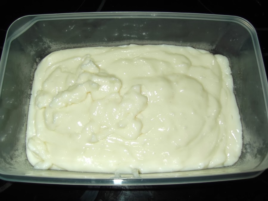 Ahora coge un taper y úntalo con aceite de girasol para que se desmolde más fácilmente. Vierte la mezcla en el molde y deja que se enfríe. Después tapa y al frigorífico hasta que la mezcla haya cuajado. Hazlo de un día para otro para que se cuaje bien.
