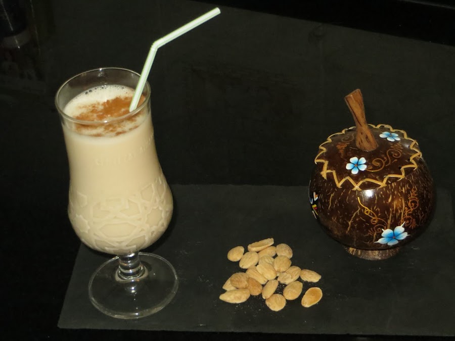Se montan las dos claras de huevo con el azúcar glass. Una vez que ha pasado el tiempo, se cuela la leche infusionada se junta con las claras y para decorar se le pone canela por encima.