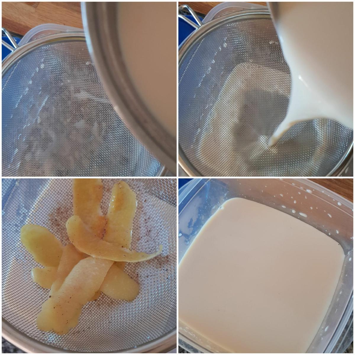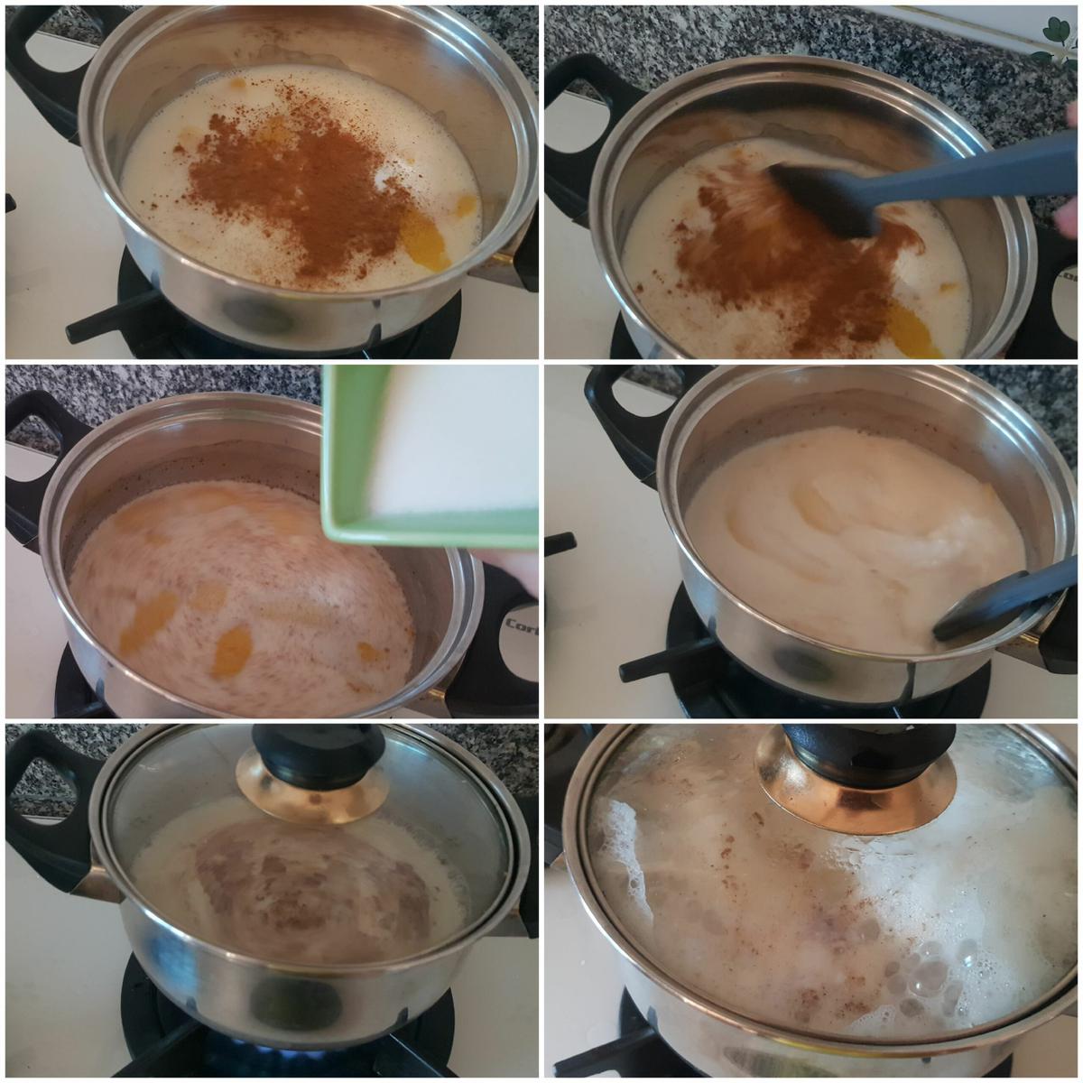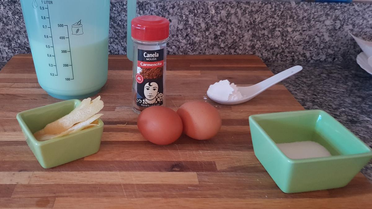 Tiempo necesario: 15 minutos.Infusionar la leche Añadimos la leche en un cazo, junto las pieles de limón, la canela y el azúcar, removemos bien y llevamos a ebullición a fuego medio. Remover de vez en cuando para que no se pegue la leche en la olla. Cuando hierva apagamos el fuego, tapamos y dejamos enfriar a temperatura ambiente.