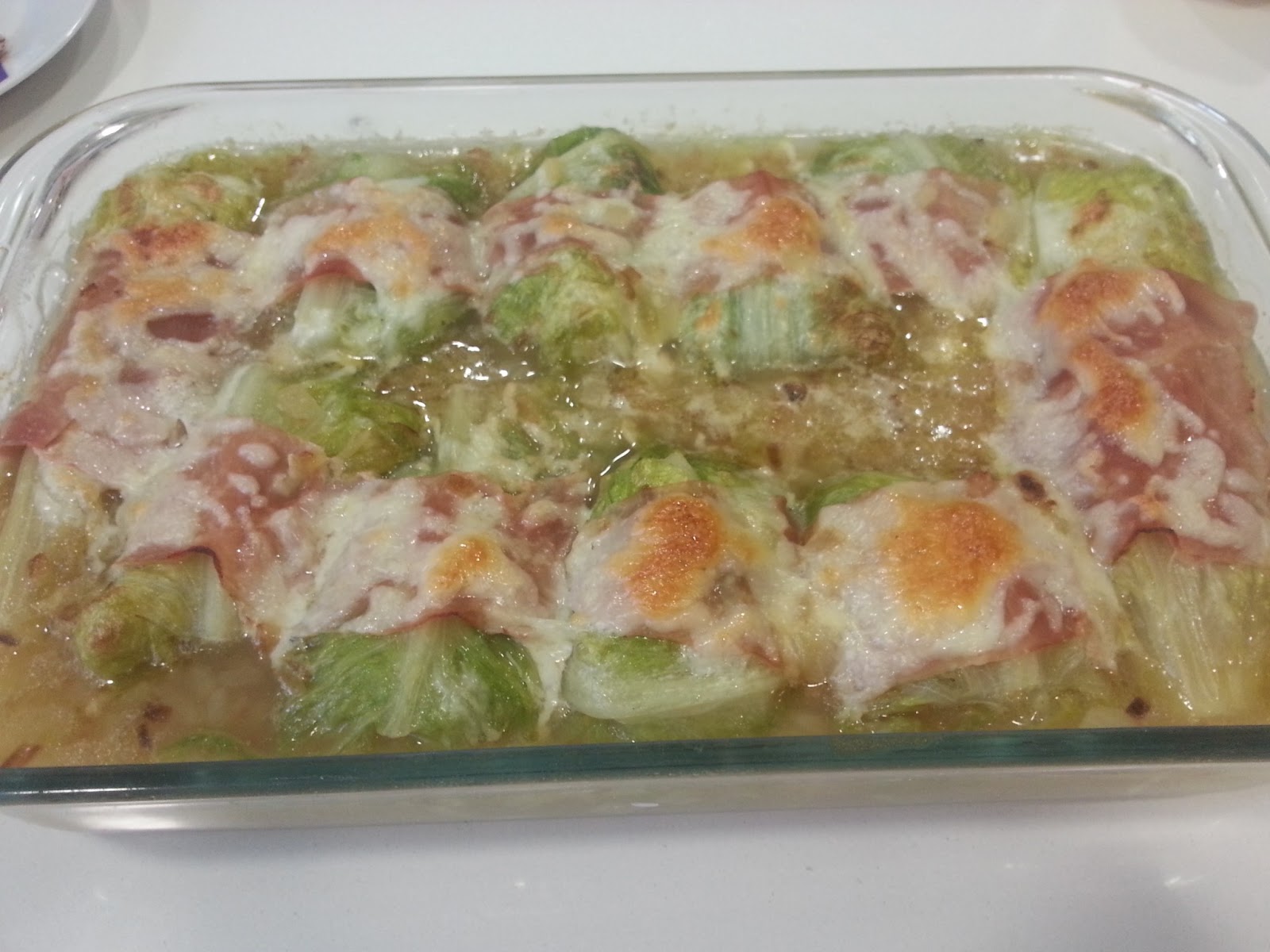 En realidad se hace con cogollos de lechuga, como porciones individuales, pero como tenía dos hermosas lechugas, he hecho una pequeña versión de la original.