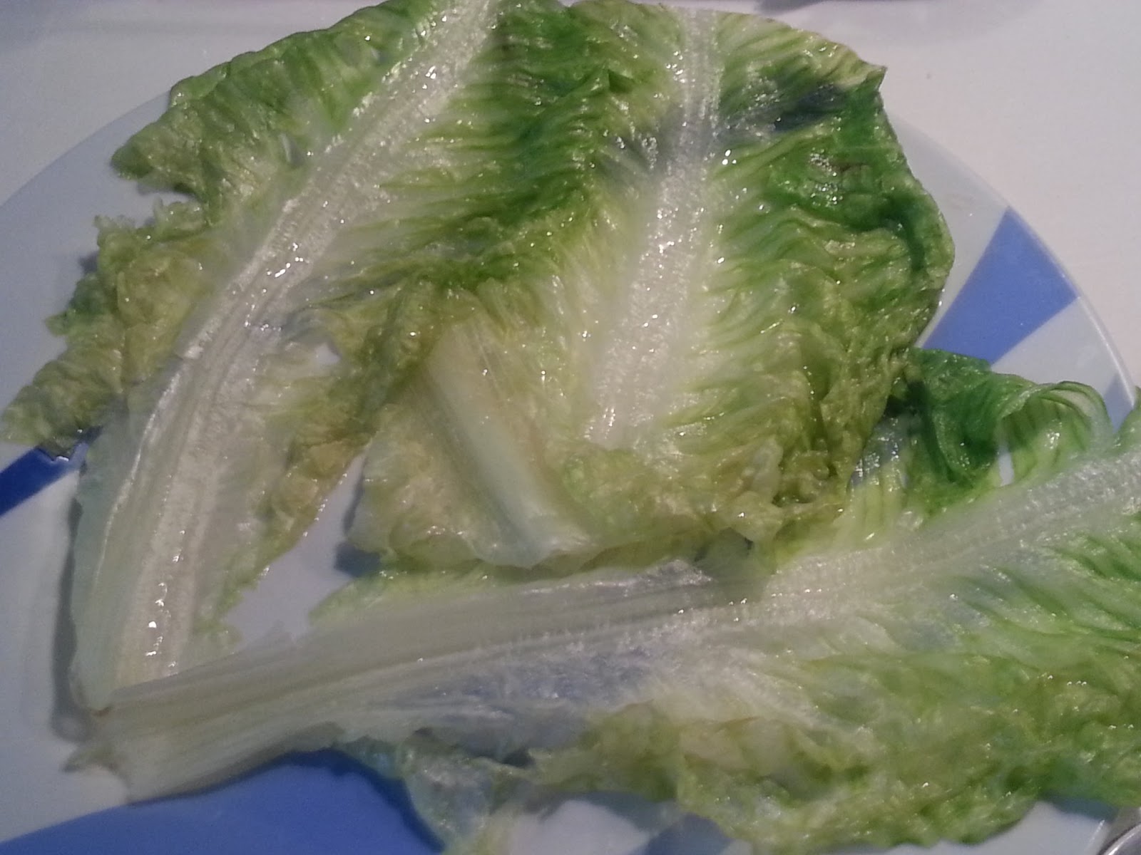 Y es que mi "marío" quería que pusiera hoy lechuga, pero con esta lluvia y este tiempo, no me apetecía ensalada, así que recordé esta receta que preparaba mi madre cuando traían las lechugas del campo a espuertas, y hacía todo tipo de inventos.