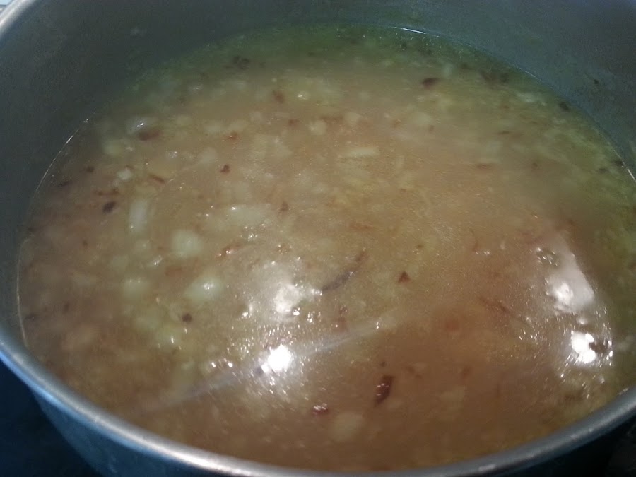 Y le vamos añadiendo la sal, un poco de pimienta y el agua de la cocción de las lechugas, hasta que quede una crema clarita. Y dejamos al fuego medio para que cueza mientras montamos la fuente.