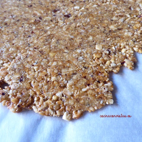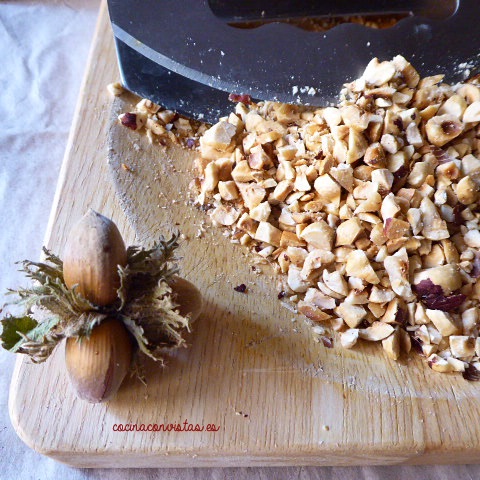 y encima de este ponemos las avellanas caramelizadas y picadas.